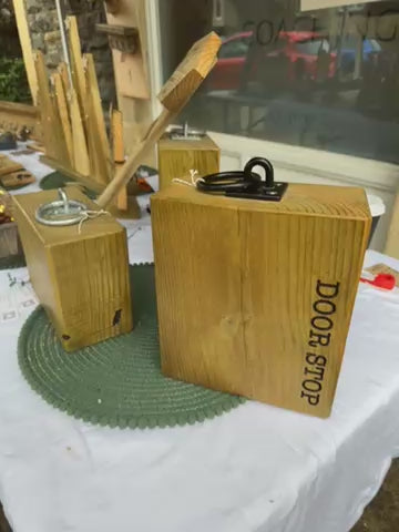 Rustic Solid Wood Block Door Stop with Handle