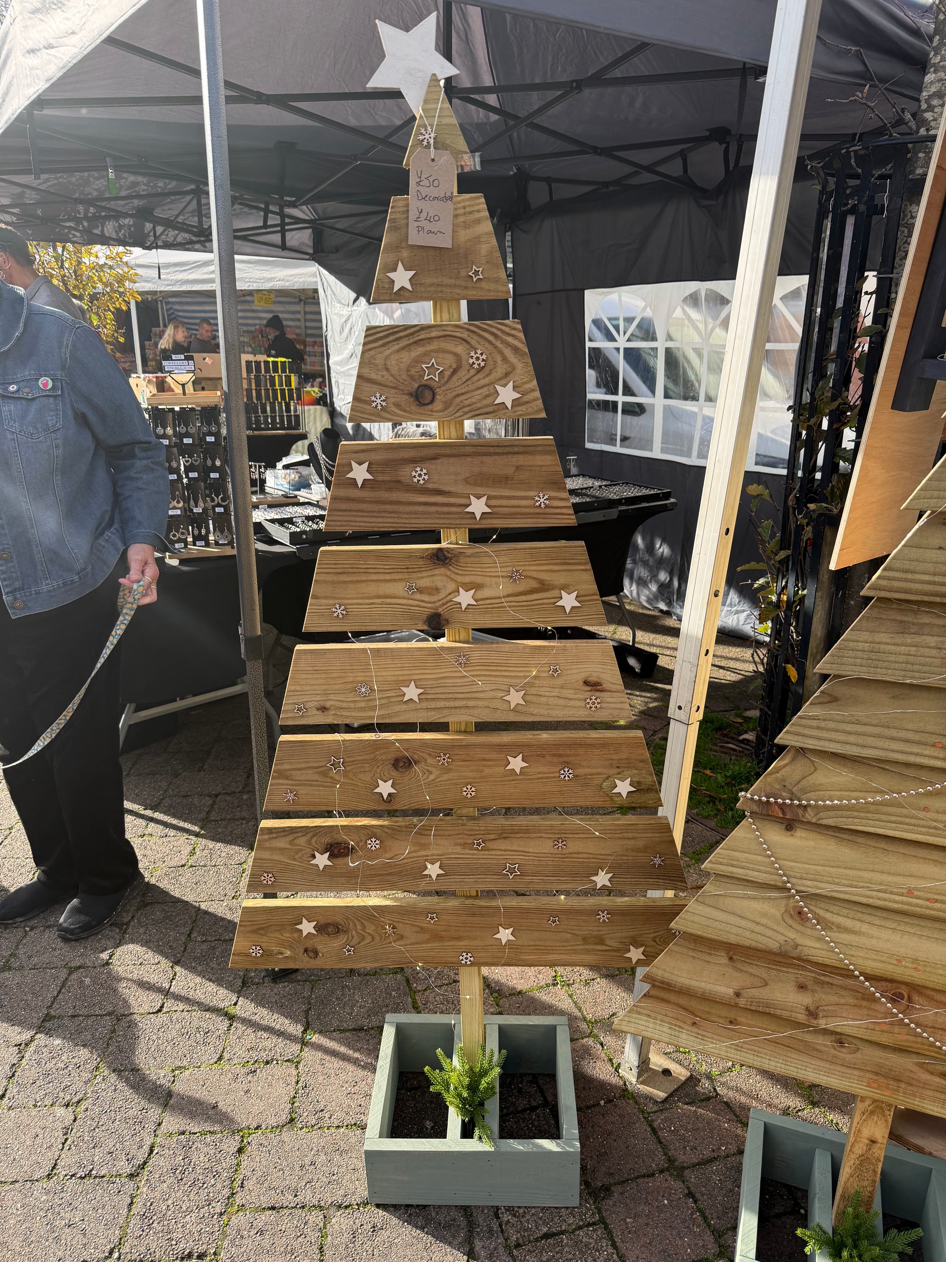 • Handcrafted Rustic Appeal: Each tree is individually made from horizontal wooden planks, giving it a distinctive, slatted, and handmade look.